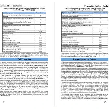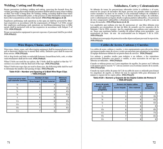 The 1926 Pocket Guide is a great tool to have handy. Small enough to fit in your back pocket, it contains summaries of the most frequently used standards in the construction industry. The standards are presented alphabetically followed by the reference to the appropriate regulation. The Pocket Guide contains both English and Spanish in the same book. You can get the General Industry Pocket Guide here. Construction Industry Pocket Guide Features