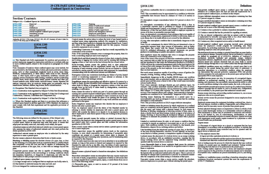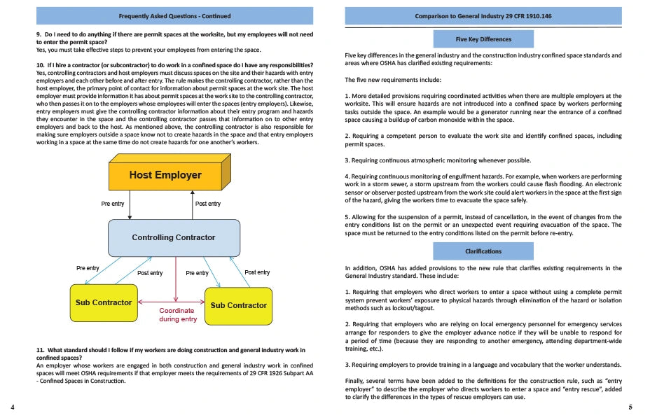 This booklet is designed to assist employers and employees in understanding the requirements for practices and procedures to protect employees engaged in construction activities at worksites with one or more confined spaces.